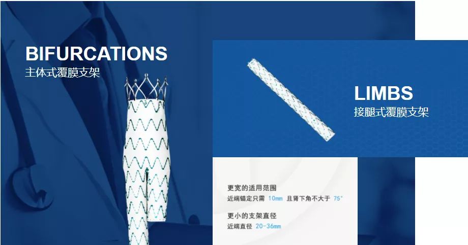 “ 華脈·天卓”在2017年獲得產品注冊證,成為首個獲批上市的國產采用帶倒刺裸支架設計的腹主動脈覆膜支架系統(tǒng)。這款支架產品適應癥范圍廣泛,近端錨定區(qū)只需10mm。腹主動脈覆膜支架系統(tǒng)在近端錨定區(qū)為10mm的時候,能治療腎下角75°的復雜腹主動脈瘤。