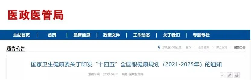 《“十四五”全國(guó)眼健康規(guī)劃(2021-2025年)》