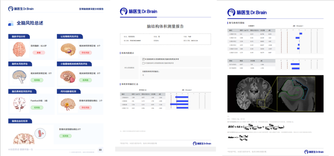 是專(zhuān)注在中樞神經(jīng)系統(tǒng)疾病的人工智能診斷分析平臺(tái),基于醫(yī)未自行搭建的全年齡段中國(guó)人群全腦結(jié)構(gòu)影像數(shù)據(jù)庫(kù),結(jié)合前沿的大數(shù)據(jù)分析和人工智能等核心技術(shù),快速、精準(zhǔn)評(píng)估全腦結(jié)構(gòu)變化、腦白質(zhì)病變、微出血灶及腦血流量等,以量化、直觀的結(jié)果,輔助臨床做出超早期的精準(zhǔn)診斷及疾病進(jìn)展預(yù)測(cè)。