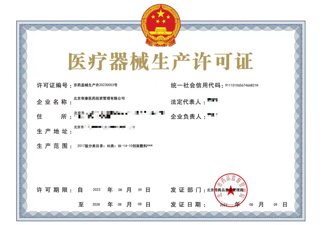 8月,奧泰康北京CDMO中心成功獲得由北京市藥品監(jiān)督管理局頒發(fā)的創(chuàng)面敷料三類生產(chǎn)許可證(京藥監(jiān)械生產(chǎn)許20230053號),標(biāo)志著北京CDMO中心已達(dá)到醫(yī)療器械產(chǎn)業(yè)化生產(chǎn)的法規(guī)要求,具備醫(yī)療器械生產(chǎn)條件并可以正式投產(chǎn),對公司產(chǎn)業(yè)化進(jìn)程具有重要里程碑式意義。