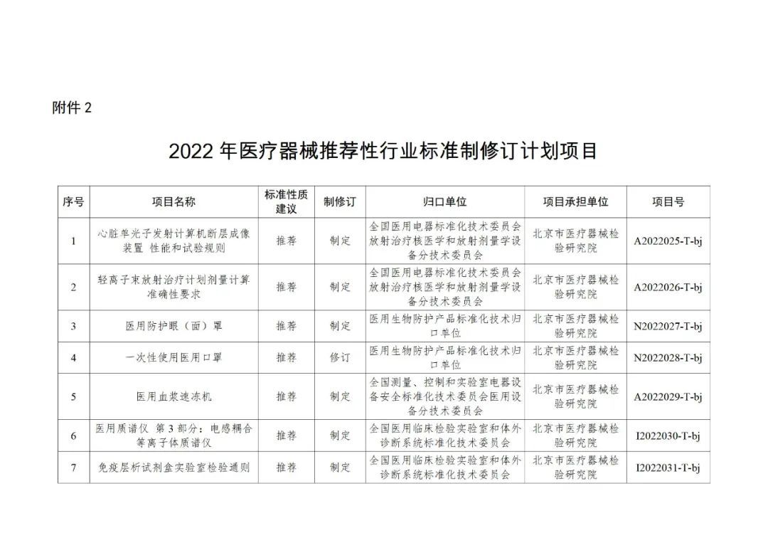 為貫徹國務(wù)院辦公廳《關(guān)于全面加強(qiáng)藥品監(jiān)管能力建設(shè)的實(shí)施意見》,落實(shí)《“十四五”國家藥品安全及促進(jìn)高質(zhì)量發(fā)展規(guī)劃》有關(guān)要求,按照國家藥監(jiān)局醫(yī)療器械行業(yè)標(biāo)準(zhǔn)制修訂工作部署,現(xiàn)將2022年醫(yī)療器械行業(yè)標(biāo)準(zhǔn)制修訂計(jì)劃項(xiàng)目印發(fā)給你們,有關(guān)要求通知如下: