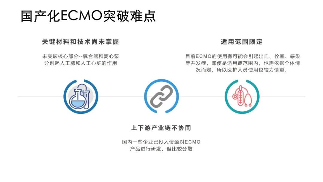 又稱“人工肺、葉克膜”,一種重要的體外生命支持技術(shù),將患者的部分靜脈血從體內(nèi)引到體外,經(jīng)膜肺氧合后再由驅(qū)動泵將血液回輸體內(nèi),對嚴(yán)重循環(huán)、呼吸衰竭的病人進行有效支持,主要用于心臟功能不全、呼吸功能不全的支持,被譽為ICU里把守“生死之門”的最后一道防線,搶救新冠肺炎危重病人的“終極武器”,ECMO作為常規(guī)治療無效的危重型新冠肺炎患者的挽救性治療設(shè)備,是《新型冠狀病毒肺炎診療方案》中明確的治療措施,但受制于研發(fā)難、生產(chǎn)難、技術(shù)門檻高、臨床使用制約等多因素限制,國產(chǎn)企業(yè)無ECMO設(shè)備獲批上市,我國ECMO嚴(yán)重依賴進口,主要被美敦力(Medtronic)、理諾琺(LivaNova)和邁維柯(Maquet)三家壟斷。
