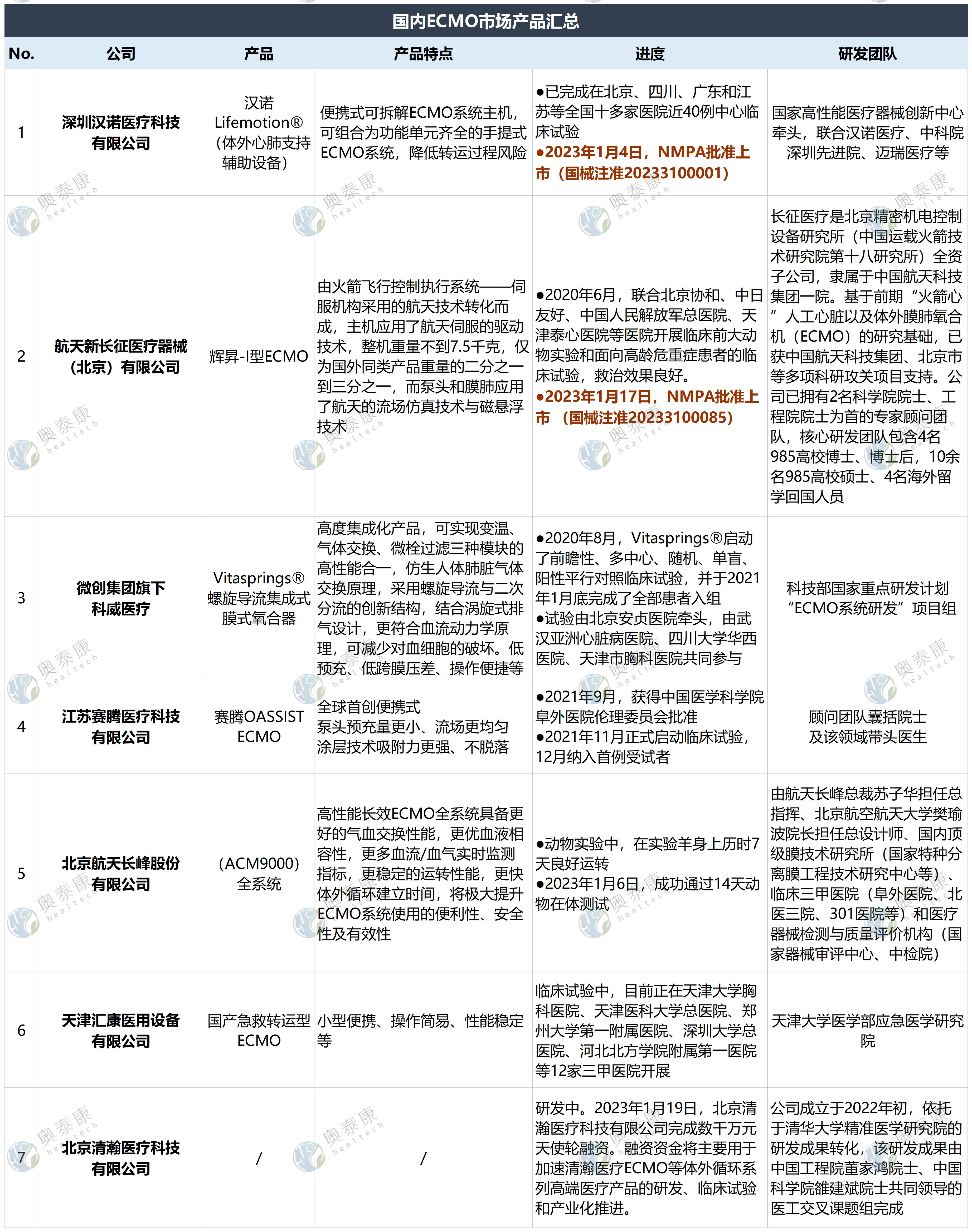 “2023年1月,國家藥監(jiān)局應(yīng)急批準(zhǔn)漢諾醫(yī)療(1.4日)和長征醫(yī)療(1.17日)的ECMO產(chǎn)品(體外肺/心肺支持輔助設(shè)備)上市,系國內(nèi)首款和第二款獲批的國產(chǎn)ECMO設(shè)備,填補了國內(nèi)空白。”
