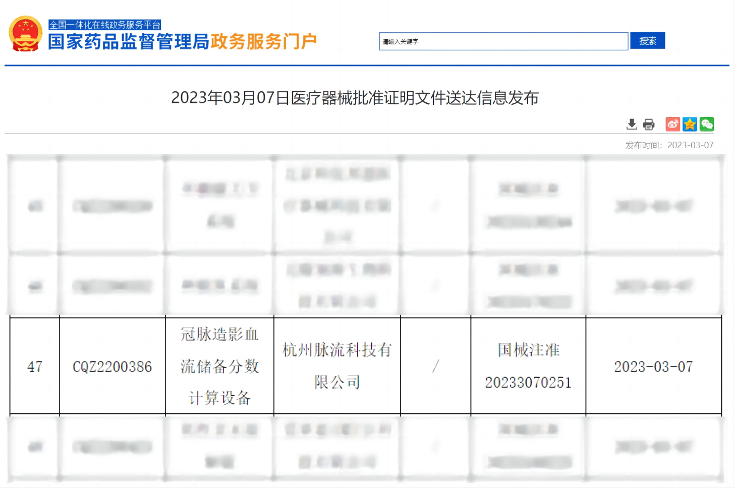 冠脈造影血流儲備分數(shù)計算設(shè)備獲證,2023年第五張三類醫(yī)療器械注冊證??MA成果發(fā)布