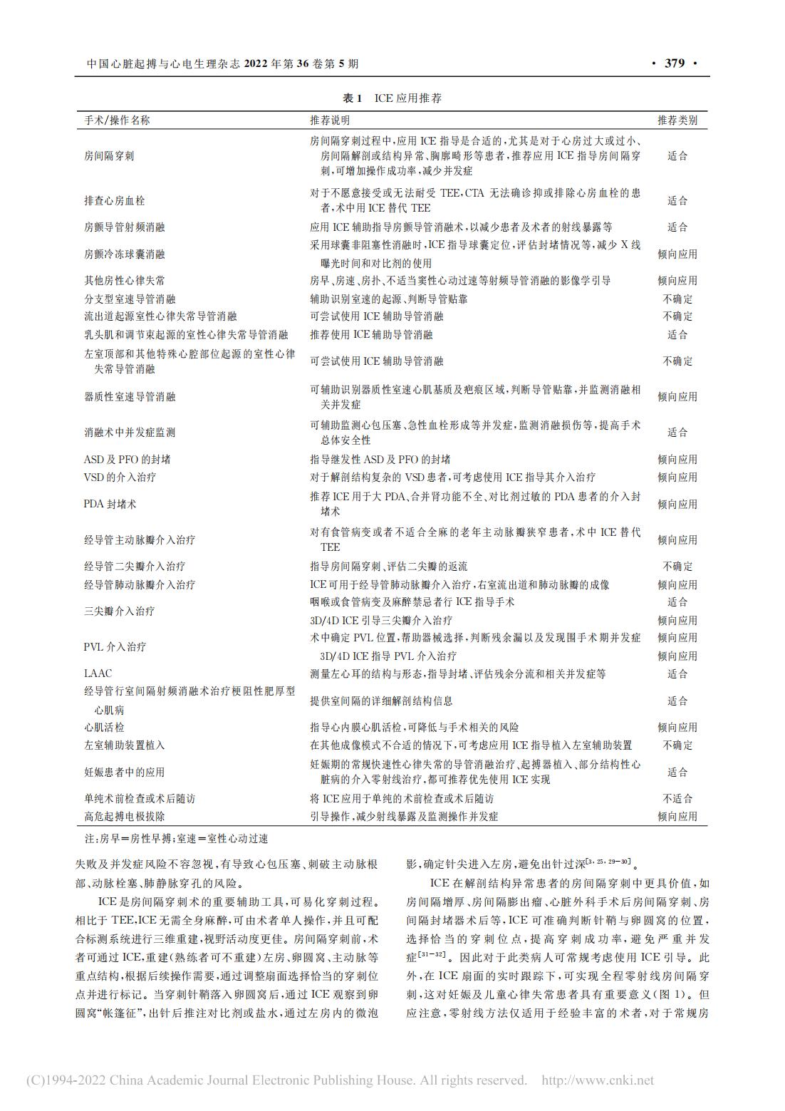 共識指出,ICE最初主要用于指導(dǎo)房間隔缺損(ASD)和卵圓孔未閉(PFO)的介入封堵,其成像效果與經(jīng)食管超聲心動圖(TEE)相當(dāng),ICE可對房間隔進行成像,明確卵圓窩的位置和解剖結(jié)構(gòu),輔助術(shù)者選擇理想穿刺位置,提高房間隔穿刺的成功率和安全性,現(xiàn)已應(yīng)用于多種需要房間隔穿刺的介入手術(shù),如心房顫動射頻導(dǎo)管消融術(shù)、二尖瓣介入治療手術(shù)、左心耳封堵術(shù)(LAAC)等。并且,ICE可顯示食管、動脈和心耳等結(jié)構(gòu),從而有望避免相關(guān)并發(fā)癥的發(fā)生,增加術(shù)者信心,減少學(xué)習(xí)曲線,減少并發(fā)癥,增加成功率。