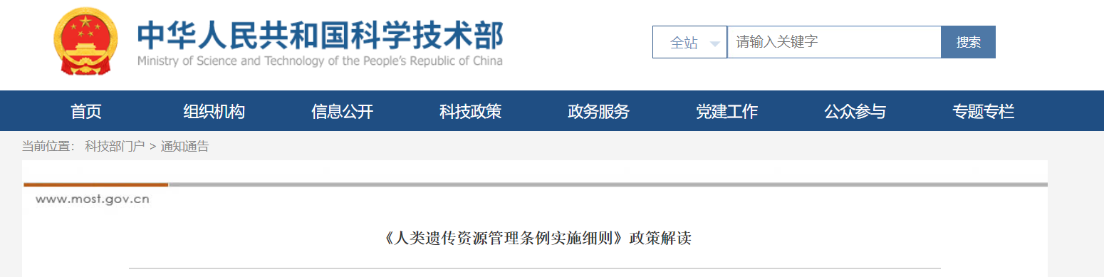 政策速遞《人類遺傳資源管理條例細(xì)則》及官方解讀,今日正式發(fā)布,2023年7月1日起施行!《人類遺傳資源管理條例實施細(xì)則》已經(jīng)2023年5月11日科技部第3次部務(wù)會審議通過,現(xiàn)予公布,自2023年7月1日起施行。