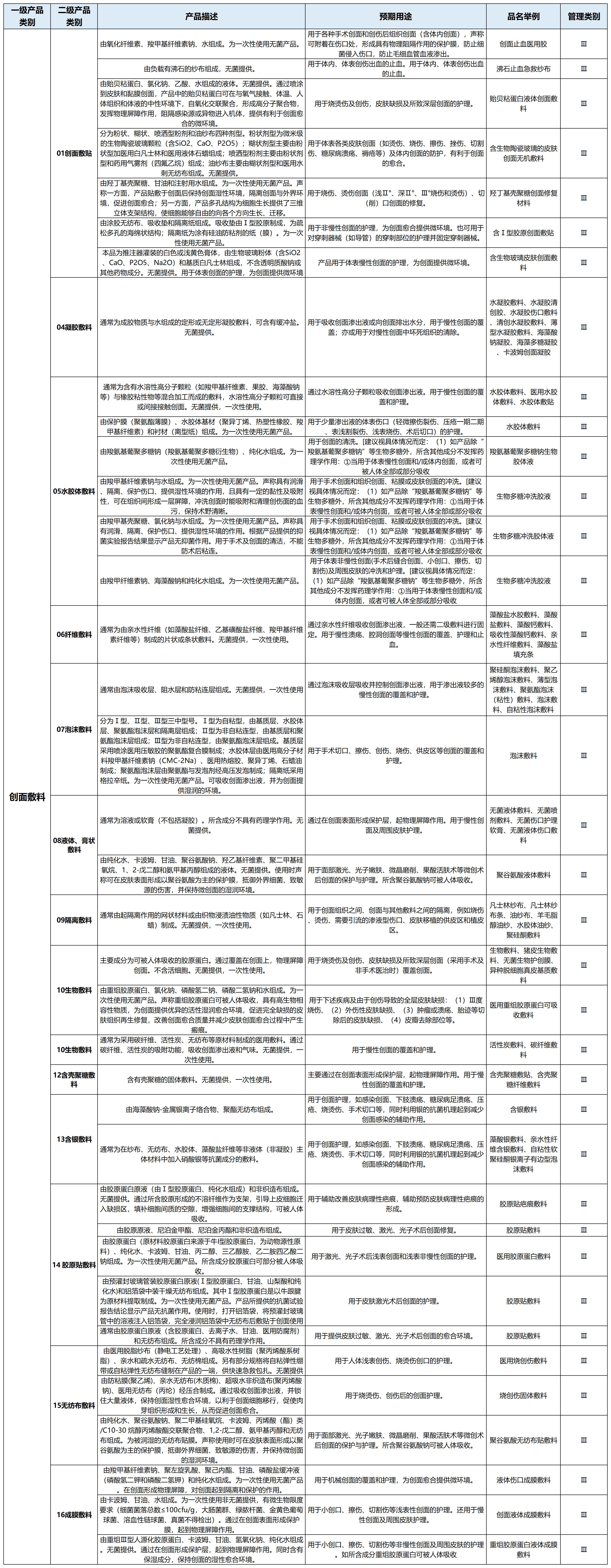 △可生產(chǎn)的三類創(chuàng)面敷料產(chǎn)品匯總