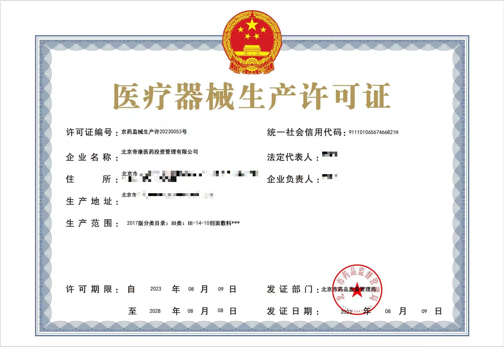 奧泰康北京CDMO中心獲得北京市藥品監(jiān)督管理局頒發(fā)的「創(chuàng)面敷料三類生產(chǎn)許可證」???2023年8月9日,奧泰康北京CDMO中心成功獲得由北京市藥品監(jiān)督管理局頒發(fā)的創(chuàng)面敷料三類生產(chǎn)許可證(京藥監(jiān)械生產(chǎn)許20230053號),系北京CDMO中心首張生產(chǎn)許可證,標(biāo)志著北京CDMO中心已達(dá)到醫(yī)療器械產(chǎn)業(yè)化生產(chǎn)的法規(guī)要求,具備醫(yī)療器械生產(chǎn)條件并可以正式投產(chǎn),對公司產(chǎn)業(yè)化進(jìn)程具有重要里程碑式意義。