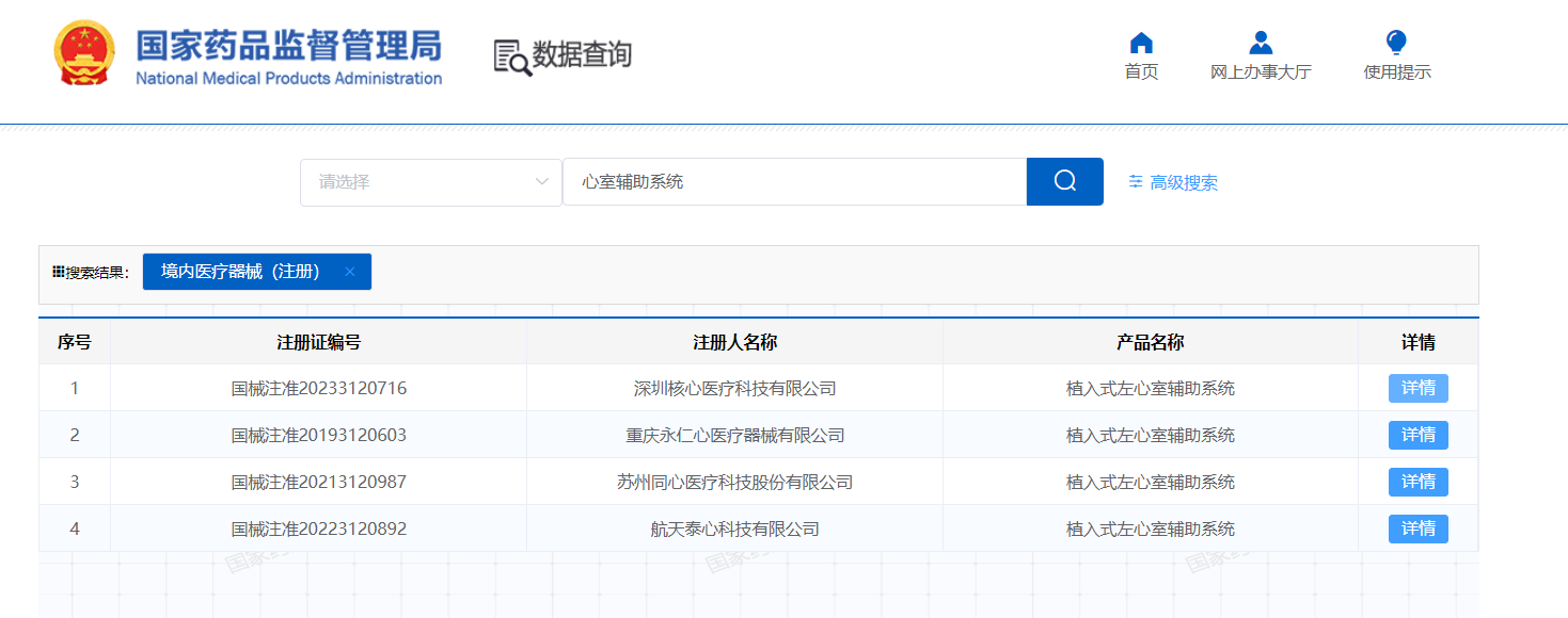 全球人工心臟市場(chǎng)中,外資品牌雅培和美敦力占據(jù)約90%市場(chǎng)份額,而國(guó)內(nèi)普及率不高,行業(yè)處于起步階段。目前已有4款國(guó)產(chǎn)植入式左心室輔助裝置(LVAD)獲NMPA批準(zhǔn)上市,來(lái)自重慶永仁心、蘇州同心、航天泰心、深圳核心。