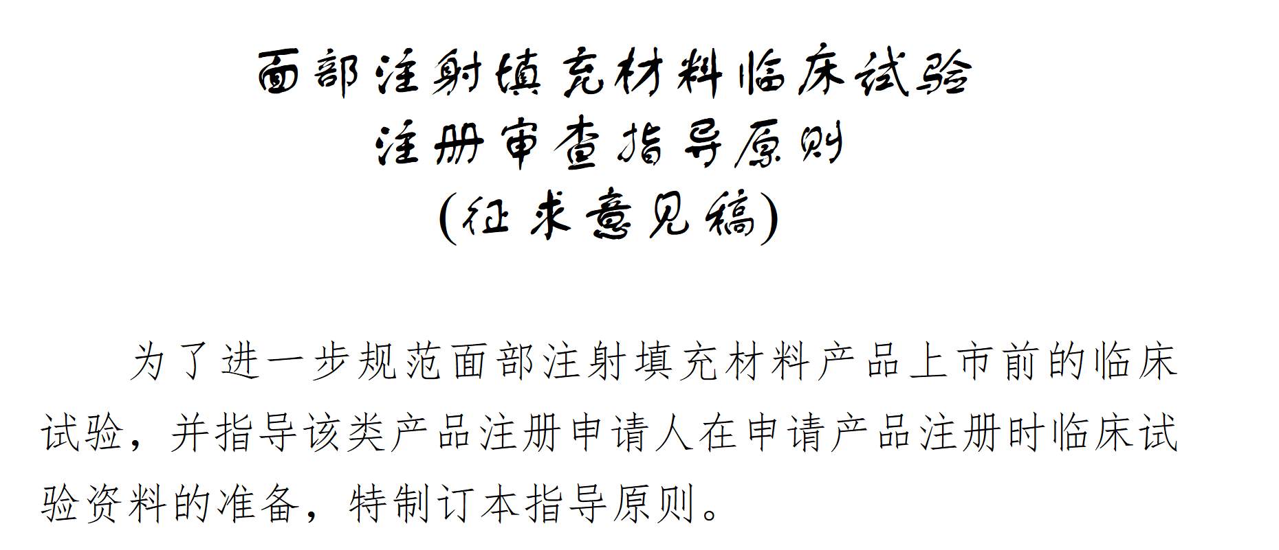 為進(jìn)一步規(guī)范面部注射填充材料產(chǎn)品上市前的臨床試驗(yàn),國(guó)家藥監(jiān)局器審中心發(fā)布《面部注射填充材料臨床試驗(yàn)注冊(cè)審查指導(dǎo)原則(征求意見稿)》,針對(duì)不用材料面部注射產(chǎn)品臨床試驗(yàn)中的適用范圍、試驗(yàn)設(shè)計(jì)、臨床評(píng)價(jià)指標(biāo)、樣本量、入排標(biāo)準(zhǔn)等進(jìn)行了規(guī)范。