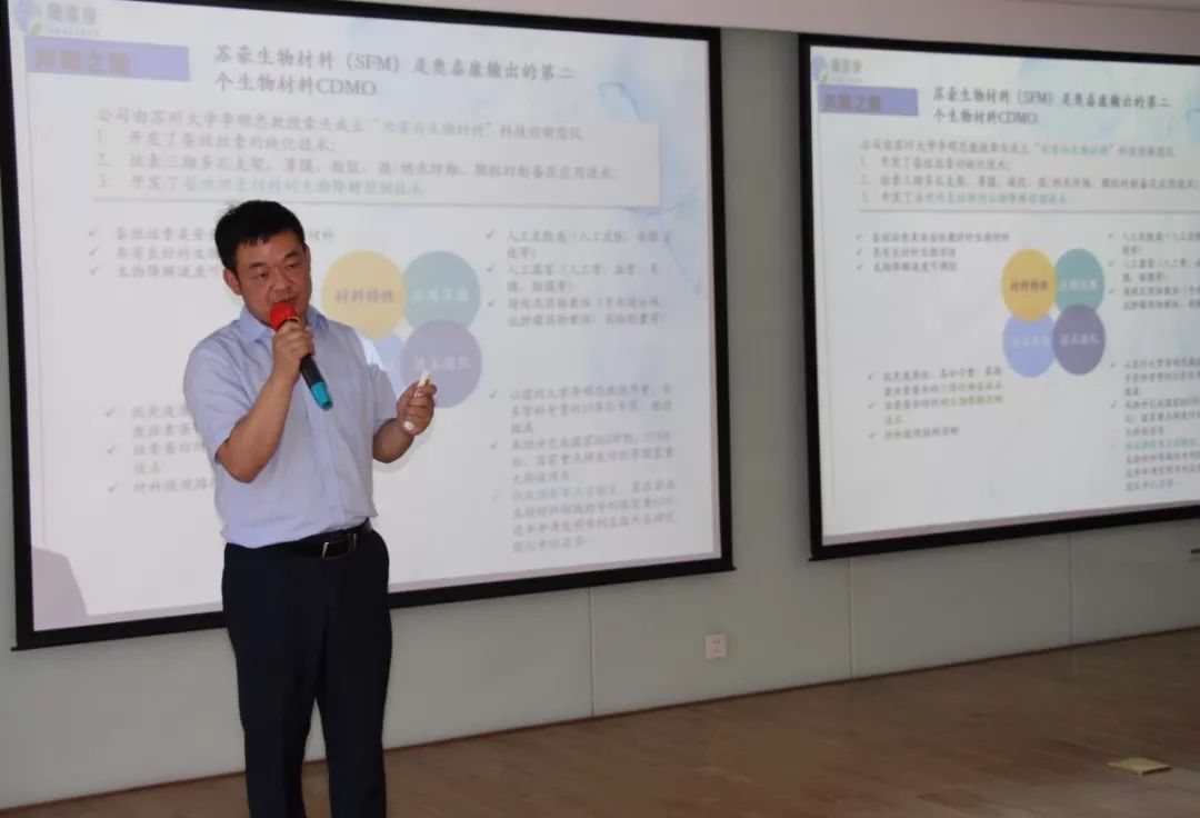 培訓會在下午1:30準時開始,集團CEO饒總對公司整體發(fā)展做詳細講解,饒總分別從“企業(yè)發(fā)展歷程”、“管理團隊介紹”、“我們的未來發(fā)展”三大方面進行介紹,培訓中,饒總憶苦思甜,深情講述奧泰康發(fā)展初期的鳳凰涅槃,在場員工無一不為之動容,為公司初期艱苦奮斗,堅守信念的精神所感動;之后奧泰康進入快速發(fā)展階段,先后獲得多項創(chuàng)新醫(yī)療器械批件,并參與多項國家重點研究項目,并與多家國內(nèi)外知名企業(yè)合作,擁有醫(yī)療器械CDMO行業(yè)唯一的已投產(chǎn)GMP車間等等,從最初單項的CRO項目服務延伸到CRO/CDMO一體化服務,致力于成為醫(yī)藥行業(yè)MA解決方案的領(lǐng)導者;