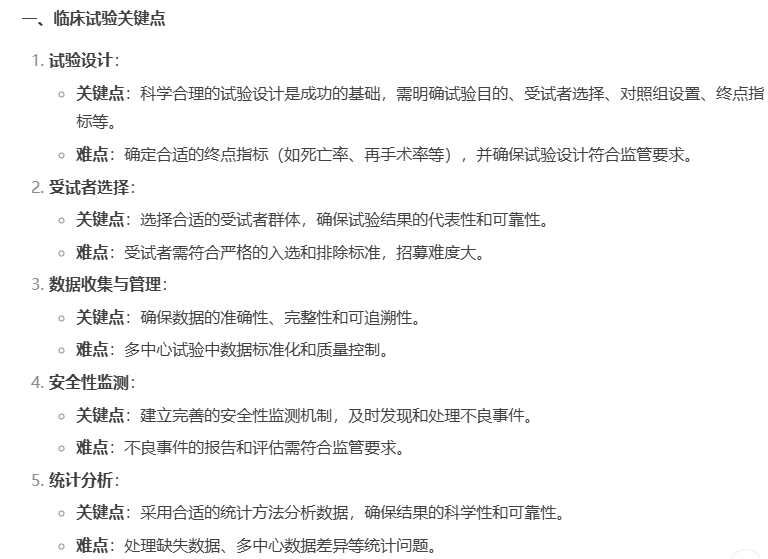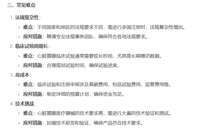 然而,每一項(xiàng)創(chuàng)新技術(shù)的臨床應(yīng)用,都離不開嚴(yán)謹(jǐn)?shù)呐R床試驗(yàn)驗(yàn)證。心臟瓣膜醫(yī)療器械的臨床試驗(yàn)和注冊(cè)申報(bào)是一個(gè)復(fù)雜且嚴(yán)格的過程,其中涉及的多個(gè)關(guān)鍵環(huán)節(jié)和潛在難點(diǎn),關(guān)于這些,看看當(dāng)下最熱門 AI工具deepseek怎么說吧~